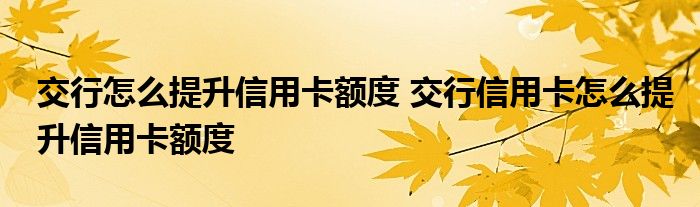 导读 大家好,小元来为大家解答问题。交行怎么提升信用卡额度,交行信用卡怎么提升信用卡额度这个很多人还不知道,现在让我们一起来了解下吧!