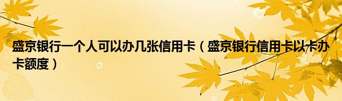 导读 大家好,小元来为大家解答问题。盛京银行一个人可以办几张信用卡,盛京银行信用卡以卡办卡额度这个很多人还不知道,现在让我们一起来了解下