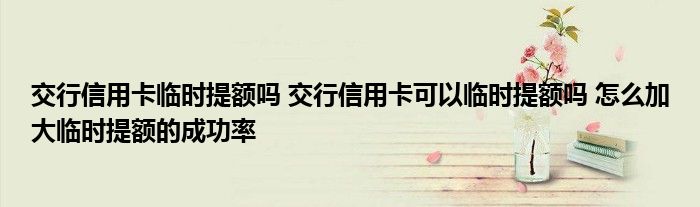 导读 大家好,小元来为大家解答问题。交行信用卡临时提额吗,交行信用卡可以临时提额吗,怎么加大临时提额的成功率这个很多人还不知道,现在让我