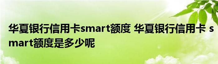 大家好,小元来为大家解答问题。华夏银行信用卡smart额度,华夏银行信用卡,smart额度是多少呢这个很多人还不知道,现在让我们一起来了解下吧!