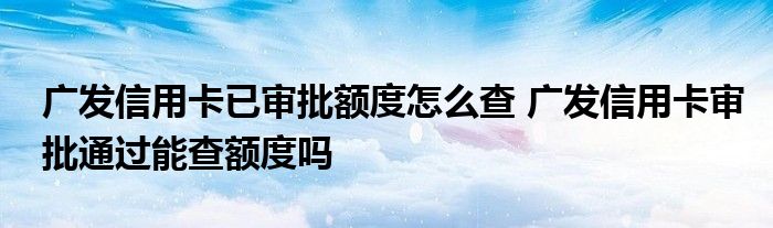 导读 大家好,小元来为大家解答问题。广发信用卡已审批额度怎么查,广发信用卡审批通过能查额度吗这个很多人还不知道,现在让我们一起来了解下吧