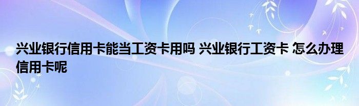 导读 大家好,小元来为大家解答问题。兴业银行信用卡能当工资卡用吗,兴业银行工资卡,怎么办理信用卡呢这个很多人还不知道,现在让我们一起来了