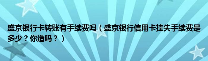 导读 大家好,小元来为大家解答问题。盛京银行卡转账有手续费吗,盛京银行信用卡挂失手续费是多少?你造吗?这个很多人还不知道,现在让我们一起
