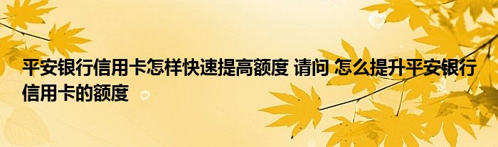 导读 大家好,小元来为大家解答问题。平安银行信用卡怎样快速提高额度,请问,怎么提升平安银行信用卡的额度这个很多人还不知道,现在让我们一起