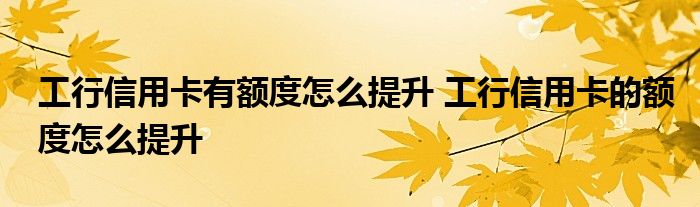 导读 大家好,小元来为大家解答问题。工行信用卡有额度怎么提升,工行信用卡的额度怎么提升这个很多人还不知道,现在让我们一起来了解下吧!