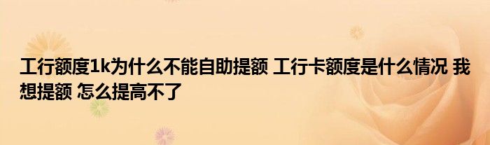 导读 大家好,小元来为大家解答问题。工行额度1k为什么不能自助提额,工行卡额度是什么情况,我想提额,怎么提高不了这个很多人还不知道,现在让