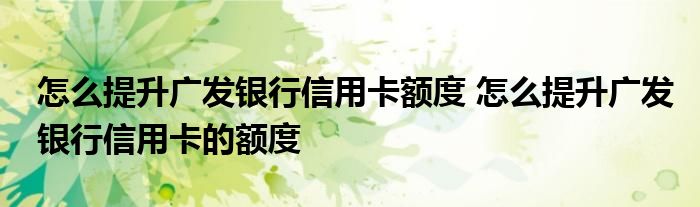 导读 大家好,小元来为大家解答问题。怎么提升广发银行信用卡额度,怎么提升广发银行信用卡的额度这个很多人还不知道,现在让我们一起来了解下吧