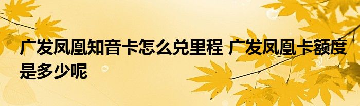 导读 大家好,小元来为大家解答问题。广发凤凰知音卡怎么兑里程,广发凤凰卡额度是多少呢这个很多人还不知道,现在让我们一起来了解下吧!
