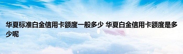 导读 大家好,小元来为大家解答问题。华夏标准白金信用卡额度一般多少,华夏白金信用卡额度是多少呢这个很多人还不知道,现在让我们一起来了解下