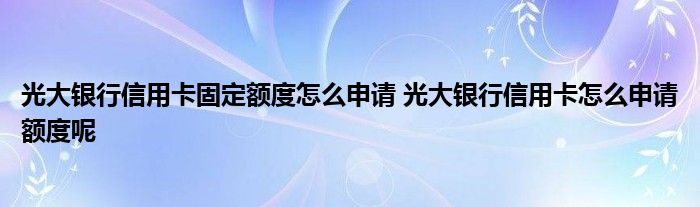 导读 大家好,小元来为大家解答问题。光大银行信用卡固定额度怎么申请,光大银行信用卡怎么申请额度呢这个很多人还不知道,现在让我们一起来了解