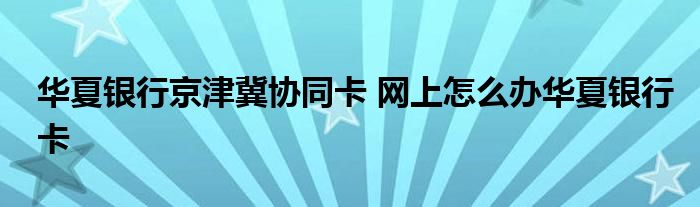 导读 大家好,小元来为大家解答问题。华夏银行京津冀协同卡,网上怎么办华夏银行卡这个很多人还不知道,现在让我们一起来了解下吧!