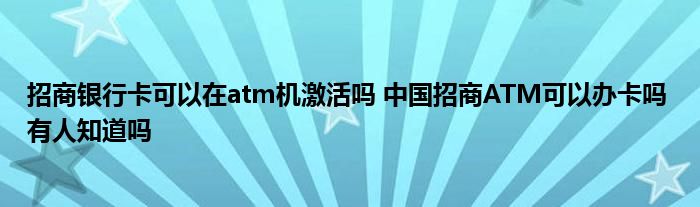 导读 大家好,小元来为大家解答问题。招商银行卡可以在atm机激活吗,中国招商ATM可以办卡吗,有人知道吗这个很多人还不知道,现在让我们一起来了