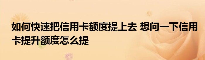 导读 大家好,小元来为大家解答问题。如何快速把信用卡额度提上去,想问一下信用卡提升额度怎么提这个很多人还不知道,现在让我们一起来了解下吧