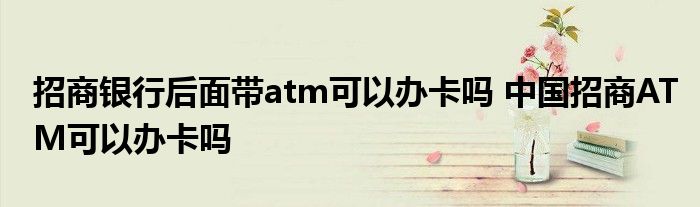 导读 大家好,小元来为大家解答问题。招商银行后面带atm可以办卡吗,中国招商ATM可以办卡吗这个很多人还不知道,现在让我们一起来了解下吧!