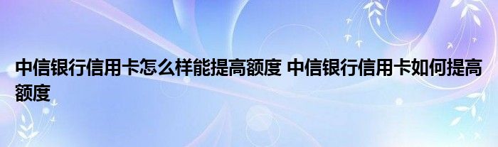 导读 大家好,小元来为大家解答问题。中信银行信用卡怎么样能提高额度,中信银行信用卡如何提高额度这个很多人还不知道,现在让我们一起来了解下