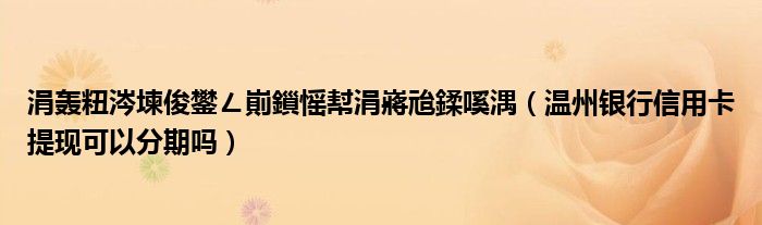 大家好,小元来为大家解答问题。涓轰粈涔堜俊鐢ㄥ崱鎻愮幇涓嶈兘鍒嗘湡,温州银行信用卡提现可以分期吗这个很多人还不知道,现在让我们一起来了解下吧!