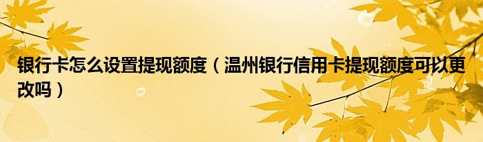 导读 大家好,小元来为大家解答问题。银行卡怎么设置提现额度,温州银行信用卡提现额度可以更改吗这个很多人还不知道,现在让我们一起来了解下吧