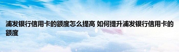 导读 大家好,小元来为大家解答问题。浦发银行信用卡的额度怎么提高,如何提升浦发银行信用卡的额度这个很多人还不知道,现在让我们一起来了解下