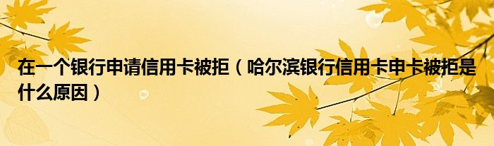 导读 大家好,小元来为大家解答问题。在一个银行申请信用卡被拒,哈尔滨银行信用卡申卡被拒是什么原因这个很多人还不知道,现在让我们一起来了解