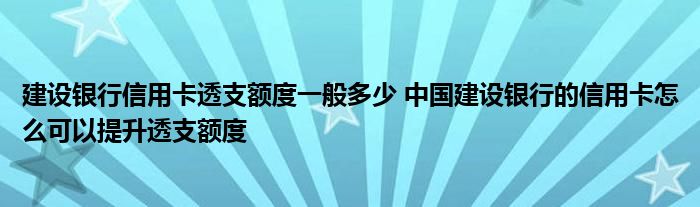 大家好,小元来为大家解答问题。建设银行信用卡透支额度一般多少,中国建设银行的信用卡怎么可以提升透支额度这个很多人还不知道,现在让我们一起来了解下吧!