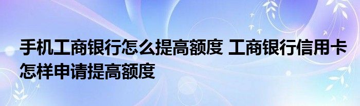 导读 大家好,小元来为大家解答问题。手机工商银行怎么提高额度,工商银行信用卡怎样申请提高额度这个很多人还不知道,现在让我们一起来了解下吧