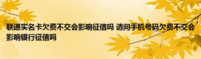 导读 大家好,小元来为大家解答问题。联通实名卡欠费不交会影响征信吗,请问手机号码欠费不交会影响银行征信吗这个很多人还不知道,现在让我们一