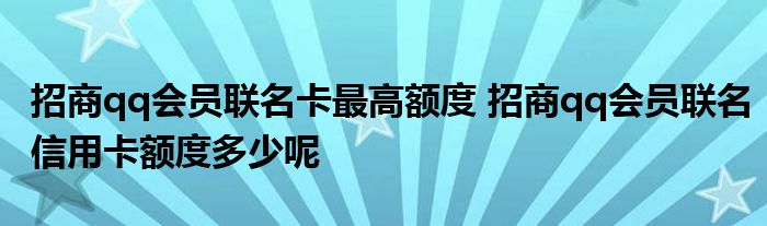 导读 大家好,小元来为大家解答问题。招商qq会员联名卡最高额度,招商qq会员联名信用卡额度多少呢这个很多人还不知道,现在让我们一起来了解下吧