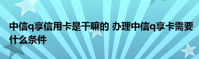 导读 大家好,小元来为大家解答问题。中信q享信用卡是干嘛的,办理中信q享卡需要什么条件这个很多人还不知道,现在让我们一起来了解下吧!
