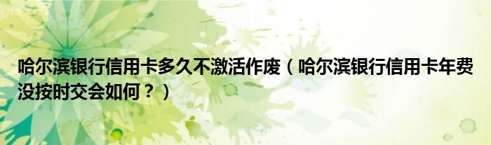 导读 大家好,小元来为大家解答问题。哈尔滨银行信用卡多久不激活作废,哈尔滨银行信用卡年费没按时交会如何?这个很多人还不知道,现在让我们一