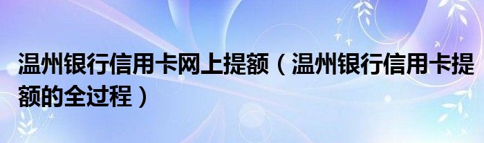 大家好,小元来为大家解答问题。温州银行信用卡网上提额,温州银行信用卡提额的全过程这个很多人还不知道,现在让我们一起来了解下吧!