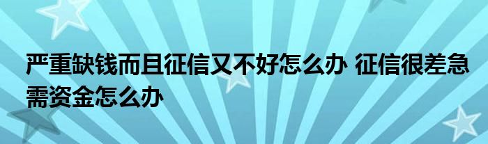 导读 大家好,小元来为大家解答问题。严重缺钱而且征信又不好怎么办,征信很差急需资金怎么办这个很多人还不知道,现在让我们一起来了解下吧!
