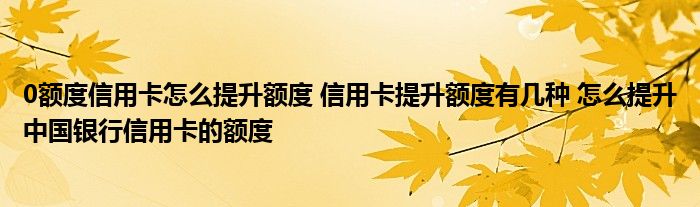 导读 大家好,小元来为大家解答问题。0额度信用卡怎么提升额度,信用卡提升额度有几种,怎么提升中国银行信用卡的额度这个很多人还不知道,现在让