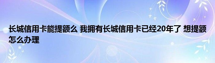 导读 大家好,小元来为大家解答问题。长城信用卡能提额么,我拥有长城信用卡已经20年了,想提额怎么办理这个很多人还不知道,现在让我们一起来了