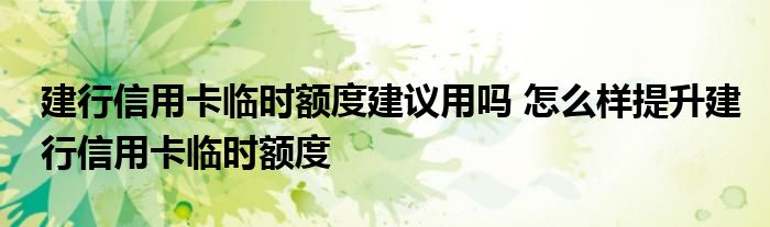 导读 大家好,小元来为大家解答问题。建行信用卡临时额度建议用吗,怎么样提升建行信用卡临时额度这个很多人还不知道,现在让我们一起来了解下吧