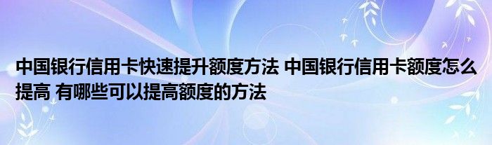 导读 大家好,小元来为大家解答问题。中国银行信用卡快速提升额度方法,中国银行信用卡额度怎么提高,有哪些可以提高额度的方法这个很多人还不知