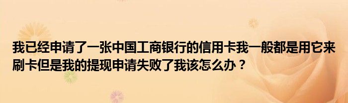 大家好,小元来为大家解答问题。我已经申请了一张中国工商银行的信用卡我一般都是用它来刷卡但是我的提现申请失败了我该怎么办?这个很多人还不知道,现在让我们一起来了解下吧!