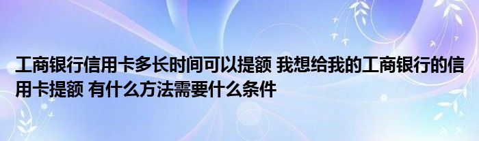 大家好,小元来为大家解答问题。工商银行信用卡多长时间可以提额,我想给我的工商银行的信用卡提额,有什么方法需要什么条件这个很多人还不知道,现在让我们一起来了解下吧!
