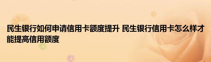 3、 关于永久额度的提升,民生银行信用卡和账户的状态影响客户申请额度调整,所有状态异常的卡和账户都不能申请额度调整。如果客户名下同时存在销户卡账户和其他标准账户,客户只能申请销户卡账户的调整;标准账户不接受客户的调整申请;如果信用卡账户已经注销,标准账户可以。此外,民生银行会根据客户的用卡交易变化情况,由系统进行综合评估。持卡人最好经常用卡,开具账单后再申请;但是银行审核的时候,还是需要根据综合得分来决定是否可以调整金额。关于临时额度的调整,民生银行信用卡申请的有效期为15天以内,客户申请临时额度调整的生效日期一般不超过10天,否则不予受理。持卡人不能单独申请增加预借现金授信额度,但临时调整可以增加账户的可用取现额度,因为临时增加会根据账户层级设置的“预借现金比例”同步增加可用取现额度。民生银行临时授信额度调整后,已使用的临时授信额度在临时授信额度结束日计入当期账单最低还款额。此外,申请临时额度调整也是民生银行根据客户的用卡交易变化综合判断。持卡人需要多用卡,开具账单后才能申请。这时候他们还需要根据综合分数来决定是否可以调剂。