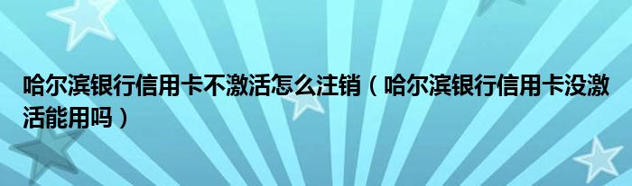 大家好,小元来为大家解答问题。哈尔滨银行信用卡不激活怎么注销,哈尔滨银行信用卡没激活能用吗这个很多人还不知道,现在让我们一起来了解下吧!