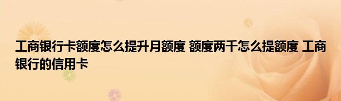 导读 大家好,小元来为大家解答问题。工商银行卡额度怎么提升月额度,额度两千怎么提额度,工商银行的信用卡这个很多人还不知道,现在让我们一起
