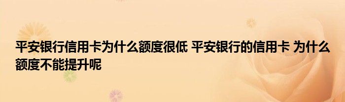 导读 大家好,小元来为大家解答问题。平安银行信用卡为什么额度很低,平安银行的信用卡,为什么额度不能提升呢这个很多人还不知道,现在让我们一