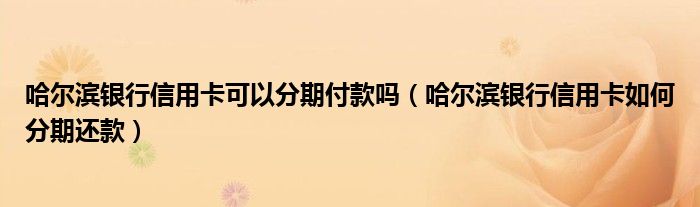 导读 大家好,小元来为大家解答问题。哈尔滨银行信用卡可以分期付款吗,哈尔滨银行信用卡如何分期还款这个很多人还不知道,现在让我们一起来了解