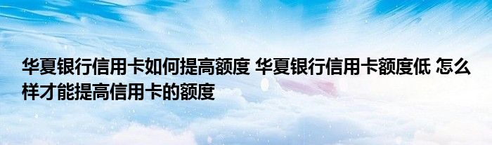 导读 大家好,小元来为大家解答问题。华夏银行信用卡如何提高额度,华夏银行信用卡额度低,怎么样才能提高信用卡的额度这个很多人还不知道,现在