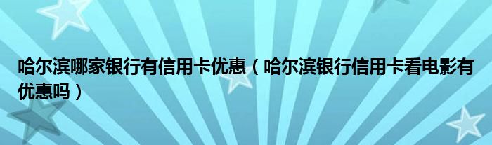 大家好,小元来为大家解答问题。哈尔滨哪家银行有信用卡优惠,哈尔滨银行信用卡看电影有优惠吗这个很多人还不知道,现在让我们一起来了解下吧!
