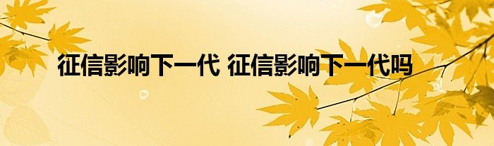 导读 大家好,小元来为大家解答问题。征信影响下一代,征信影响下一代吗这个很多人还不知道,现在让我们一起来了解下吧!