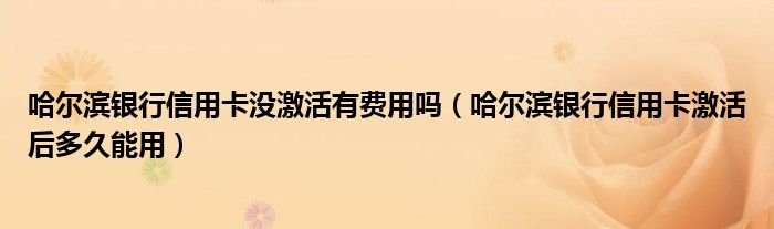 导读 大家好,小元来为大家解答问题。哈尔滨银行信用卡没激活有费用吗,哈尔滨银行信用卡激活后多久能用这个很多人还不知道,现在让我们一起来了