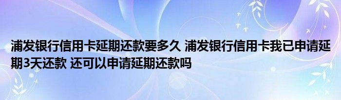 导读 大家好,小元来为大家解答问题。浦发银行信用卡延期还款要多久,浦发银行信用卡我已申请延期3天还款,还可以申请延期还款吗这个很多人还不