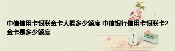 导读 大家好,小元来为大家解答问题。中信信用卡银联金卡大概多少额度,中信银行信用卡银联卡2金卡是多少额度这个很多人还不知道,现在让我们一起