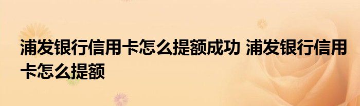 导读 大家好,小元来为大家解答问题。浦发银行信用卡怎么提额成功,浦发银行信用卡怎么提额这个很多人还不知道,现在让我们一起来了解下吧!