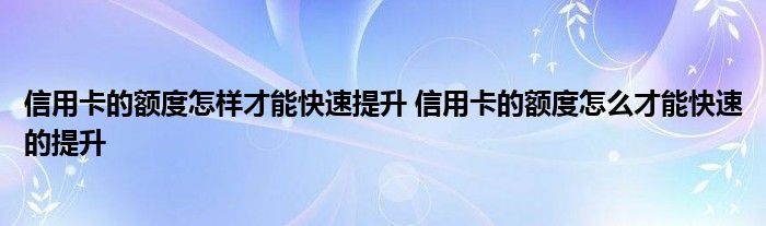 导读 大家好,小元来为大家解答问题。信用卡的额度怎样才能快速提升,信用卡的额度怎么才能快速的提升这个很多人还不知道,现在让我们一起来了解